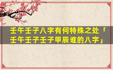 壬午壬子八字 🌲 的特 🐒 殊之处: