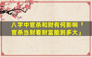 官 🐒 杀当财看财富能 🐛 到多 🦆 大