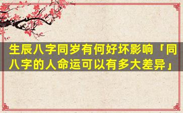 生辰八字同岁的影响 🐬 还取决于其他因素,如属相、五、行,月令和日柱等需要具体分析才能判断具体的好坏影响。