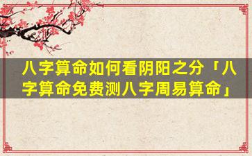 八字中阴阳 🐱 之分看法