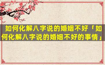 八 🌷 字学中的婚姻 🐧 不佳的化解方法 🌵