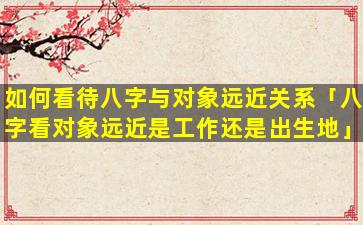 “八字看对 🌷 象远近”中远近,“是”指对象,与本人的居住距离或联系密切度而不是与出生地的距离。