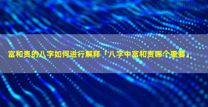 在八字学中,富,和贵虽然同为美德但其侧 🦅 重 🐒 点有 🐘 所不同: