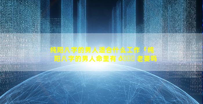 1、纯阳八字的男人适合什么工作纯阳八字的男人,日主为阳干,且五行中没有阴干(即壬癸),其余五行齐全或不齐全。适合从事以下工作:领导管理类: 领导干部 企业家 项目经理 团队负责人技术创新类: 科学家 工程师 技术人员发明家艺术创造类: 画家 雕刻家 音乐家 作家阳刚...