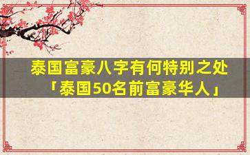 泰国富豪 🌷 的八字往往具有以下一些特别之 🐛 处 🐈 :