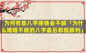 说法不准确。婚。姻不顺的八字并不一定会最终挺顺利 🌵 八字只是预测运势的一种工具并不,能准确。反,映一个人的婚姻状况婚姻的顺遂与否受多种因素影响包括性格、沟、通。经济状况和双方家庭背景等