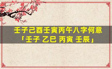 八字命理解读:壬 🐳 子己酉壬 🦄 寅丙午