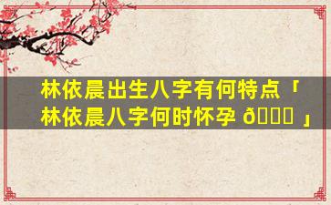 1、林依晨出生八字有何特点林依晨出生八字: 公历:1982年9月29日 农历:壬戌年 八月 初八日八字干支: 年柱:壬戌 月柱:辛酉 日柱:丙午 时柱:丁亥八字特点: 日主丙火偏旺:丙火生于酉月,得令,又得时柱丁亥生助,故偏旺。 食伤旺:四柱食伤星辛金和丁火旺盛,泄身有力...