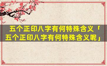 正印在八字中代 🕷 表母亲、学、历、文书稳定。五个正印 🐺 八字不存在,因。此也没有特殊含义