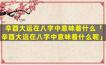 辛酉大运 🐡 在八字中意 🐶 味着: