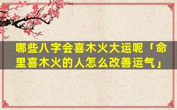 在八字命理 🕷 学中八字,“喜火木”指,的,是出生日柱的八字格局中日主身弱需要火和木元素 🐧 来生扶和旺盛。