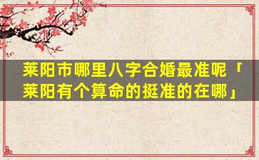 莱阳市八字合婚推荐 🐼 机构 🐵 :