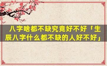 总体来说,八,字什么都不缺的人命 🐼 格较好但仍需结合实际命局具体分析命。理,学。只是作为参 🐧 考人的命运最 🐶 终还是由自身努力和环境因素共同塑造