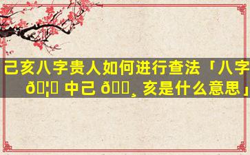 1、己亥八字贵人如何进行查法己亥八字贵人查法1. 天乙贵人 查法:年支为戌或亥,日干为甲或乙生于春季,年支为寅或卯,日干为丙或丁生于夏季,年支为巳或午,日干为戊或己生于秋季,年支为申或酉,日干为庚或辛生于冬季。2. 太极贵人 查法:日干为甲或乙,且太岁或流年干支...