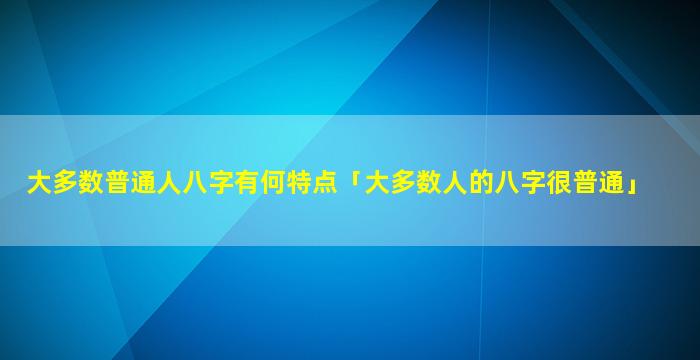 大多数普 🌵 通 🐒 人八字 🐬 的特点: