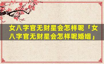 女八字 🐒 官无财星的婚姻影 🌴 响