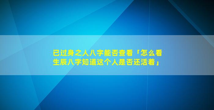 通过生辰八字并不能直接判 🍀 断一个人是否还活着。