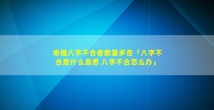 命理八字 🌷 不合的數量多寡因人而異,沒有具體統計 ☘ 數據。