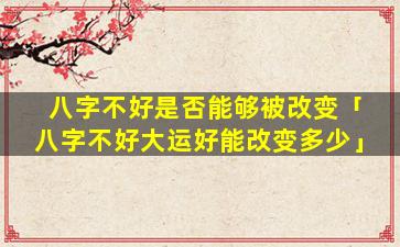 八字不好,大,运好能 🦁 改变多少 🐬 取 🦍 决于以下因素: