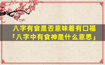 八字中“食神 🕸 ”表示食 🌼 禄,代表食,物,和口福但是否真的有口福还要结 🐦 合其他因素来判断: