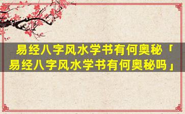 结合易 🐺 经、八、字风水学的 💐 奥 🦢 秘