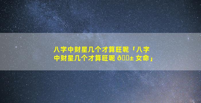 1、八字中财星几个才算旺呢八字中财星旺盛的标准:1. 财星得令强旺 财星当令:财星处于当令的月份。 财星旺相:财星处于旺相的月份。2. 财星多现 三逢财星:日干坐下、月支、时支均为财星。 四柱多见财星:八字干支中同时出现多个财星。3. 财星受生扶 印星生扶财星:财星被...