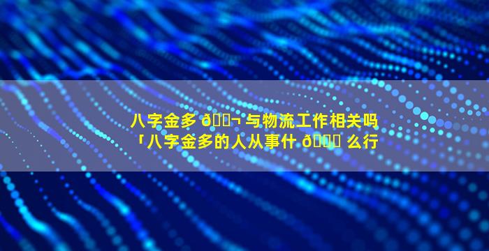 1、八字金多与物流工作相关吗没有科学证据表明八字金多与从事物流工作有关。八字是传统中医命理学中用来推算个人命运的一种方法,其基础是根据出生年月日时推算出个人八个字的干支,认为这些信息可以反映个人的性格、命运和运势。物流工作是一门涉及货物运输、仓储和配送等...