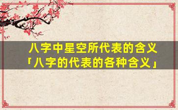 八字中不同的星 🦍 空组合会形成不同的 🐬 命理格局,具有不同的吉凶祸福 🌼 。