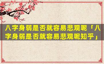 身弱的人的 🐅 确有一些性格特质与悲观联系 🌻 在一起:
