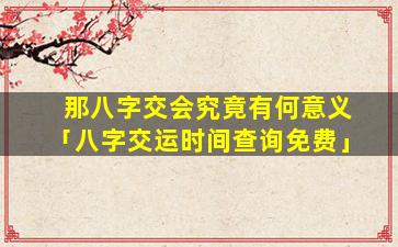八字交 🐟 运 🦄 时间 🐺 查询方法: