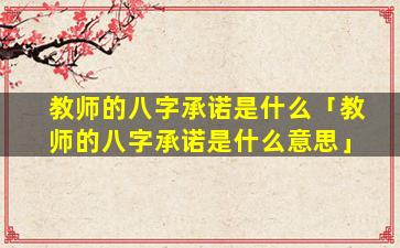 教 🐳 师的 🌿 八字 🌷 承诺
