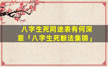 “八字生死同途 🐧 表”的深意 🐵 在 🌸 于: