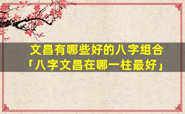 文昌 🌼 星 🐬 在八 🦊 字中的作用
